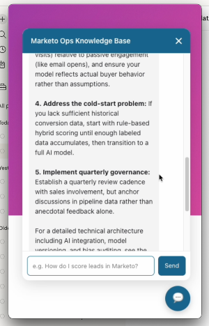 It doesn't guess. It doesn't hallucinate general Marketo advice. If the answer isn't in the archive, it will tell you so.